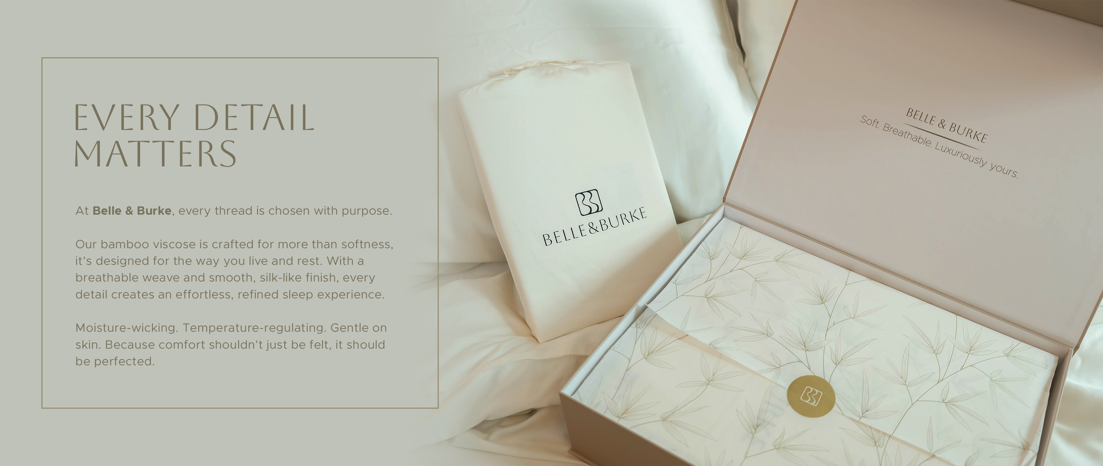 At Belle & Burke, trust begins in the weave. Our bamboo bedding is crafted with care and designed to cradle you in comfort. We don’t just promise softness, we deliver it in every thread.